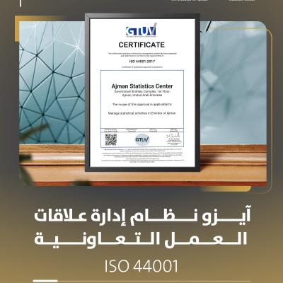 مركز عجمان للإحصاء يحصل على شهادة ISO 44001:2017 لنظام إدارة علاقات العمل التعاونية