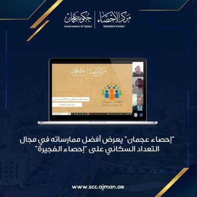 مركز عجمان للإحصاء يجتمع مع مركز الفجيرة للإحصاء، ويعرض أفضل ممارساته فــي مجــــال التعداد السكاني، والطرق التكنولوجية المستخدمة في التعداد، بالإضافة إلى تعريفه على أبرز الإنجازات والمبادرات التي حققها المركز، وذلك خلال الاجتماع الافتراضي الذي جمع مسؤولي الجهتين.