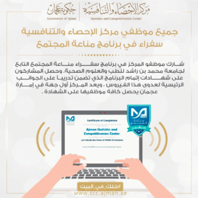 In the context of the precautionary measures taken by the government to curb the spread of the novel Corona virus (COVID-19), staff of Ajman Statistics and Competitiveness Center participated in the program of Community Immunity Ambassadors of Mohammed bin Rashid University of Medicine and Health Sciences.