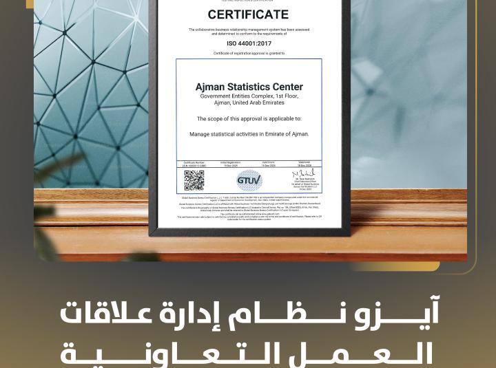 Ajman Statistics Center Receives ISO 44001:2017 Certification for Collaborative Business Relationship Management System