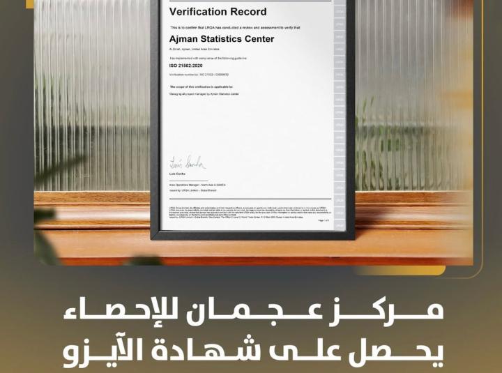 Ajman Statistics Center has obtained ISO 21502 certification for Project Management in the Strategy and Institutional Performance Department, as part of its ongoing efforts to adopt international best practices and enhance the efficiency and effectiveness of institutional project management. ISO 21502 is an international guidance standard that provides a comprehensive framework for project management across all phases, from planning through to closure, with a strong focus on achieving objectives and delivering added value with high efficiency. The standard encompasses a range of core principles and practices, including governance, stakeholder management, scope definition, time and cost management, quality, risk management, communication, and resource management. The Center’s attainment of this certification underscores its commitment to standardizing project management methodologies, improving the quality of decision-making, increasing project success rates, and ensuring alignment with strategic objectives. This, in turn, contributes to enhancing institutional performance and achieving sustainable institutional excellence.